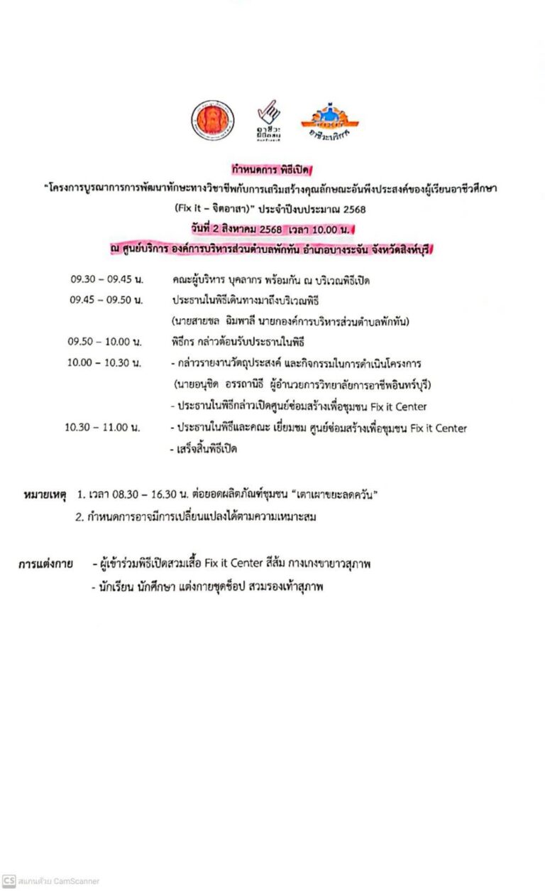 กำหนดการพิธีเปิด ศูนย์ซ่อมสร้างเพื่อชุมชน Fix it Center ระหว่างวันที่ 2-3 สิงหาคม 2568