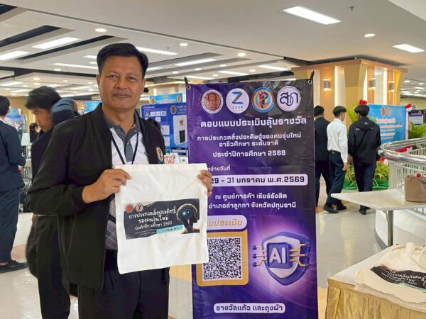 การประกวดสิ่งประดิษฐ์ของคนรุ่นใหม่ ระดับชาติ คณะกรรมการการประเมินผลปฏิบัติหน้าที่ เชิญชวนตอบแบบประเมินลุ้นรางวัล แก้วเซรามิก และกระเป๋า สกีนลาย การประกวดสิ่งประดิษฐ์ของคนรุ่นใหม่ ระดับชาติ ประจำปีการศึกษา 2568 ระหว่างวันที่ 28-31 มกราคม 2569 ณ ชั้น 5 ศูนย์การค้าเชียร์ รังสิต อำเภอลำลูกกา จังหวัดปทุมธานี