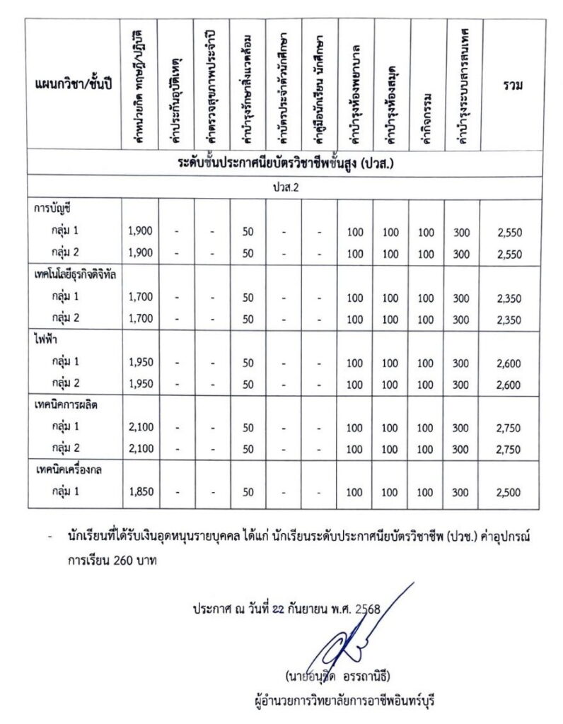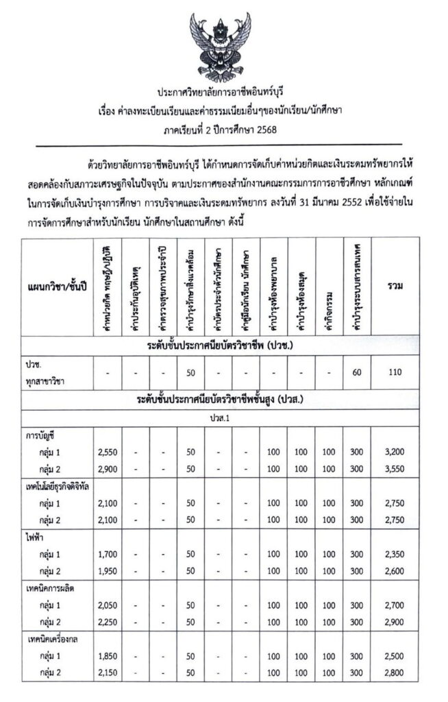 ประกาศวิทยาลัยการอาชีพอินทร์บุรี เรื่อง ค่าลงทะเบียนเรียนและค่าธรรมเนียมอื่นๆ ของนักเรียน นักศึกษา #ภาคปกติ ประจำภาคเรียนที่ 2 ปีการศึกษา 2568 26/09/256811/10/2025อำนาจ อยู่รัตน์ข่าวประกาศ, ข่าวสารสำหรับนักเรียน นักศึกษา 26