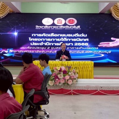 เพื่อเป็นการส่งเสริมและยกระดับคุณภาพกิจกรรมของนักเรียนนักศึกษาอย่างต่อเนื่อง วิทยาลัยการอาชีพอินทร์บุรี ได้ดำเนินการจัดโครงการคัดเลือก “ชมรมดีเด่น” ภายใต้การนิเทศ ประจำปีการศึกษา 2568 เมื่อวันพุธที่ 12 พฤศจิกายน 2568 เวลา 14:00 น. ณ ห้องประชุม 2 ขุนสรรค์ โดย นายอนุชิด อรรถานิธี ผู้อำนวยการวิทยาลัยการอาชีพอินทร์บุรี ได้มอบหมายให้ นายวัฒนากร สุรินทร์ รองผู้อำนวยการฝ่ายพัฒนากิจการนักเรียนนักศึกษา เป็นประธานในการคัดเลือก พร้อมด้วยคณะครูชมรมวิชาชีพ และนักเรียนนักศึกษาเข้าร่วมอย่างพร้อมเพรียง