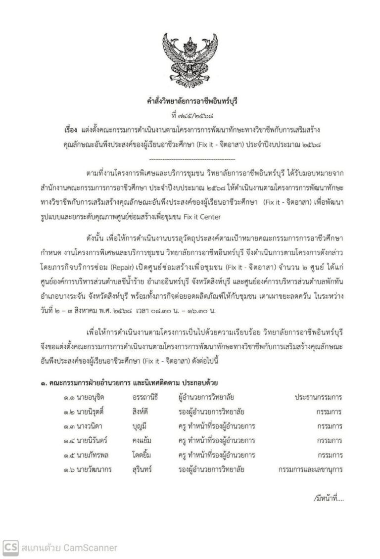 สั่งแต่งตั้งคณะกรรมการ (Fix it – จิตอาสา) ประจำปีงบประมาณ 2568 ระหว่างวันที่ 2-3 สิงหาคม 2568